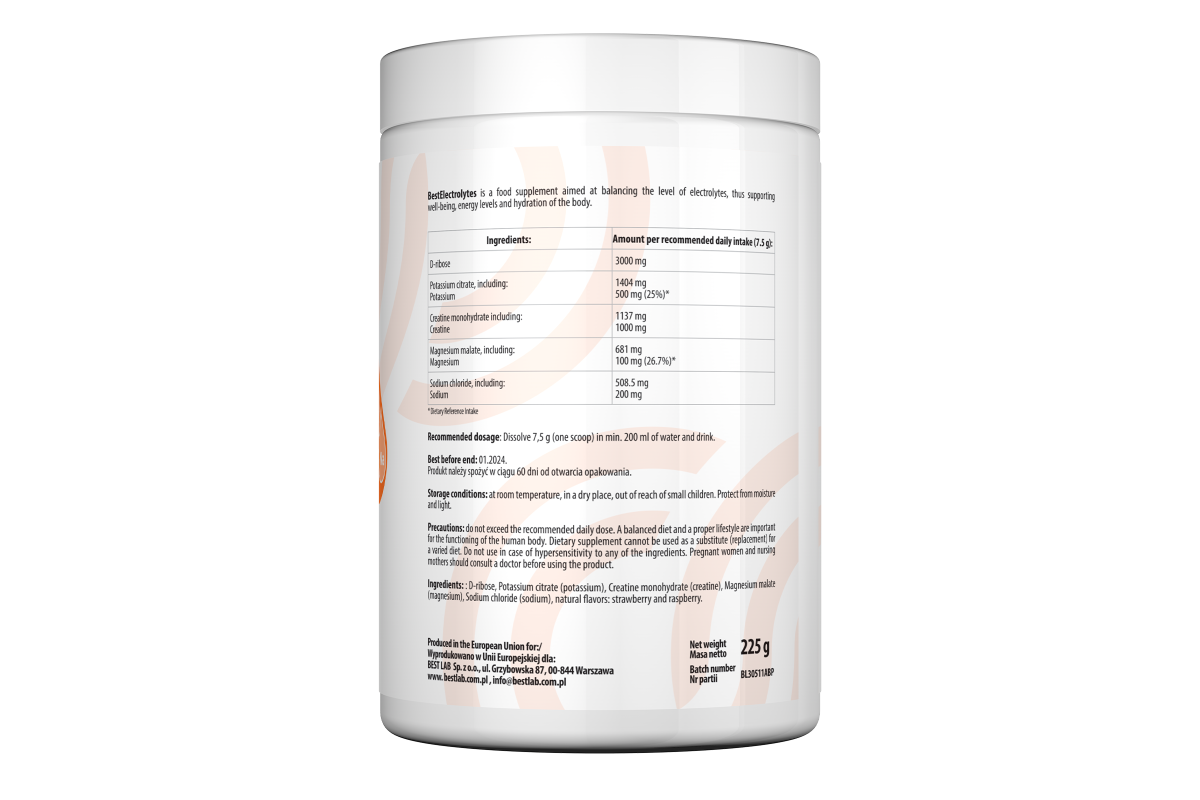 By maintaining the proper electrolyte balance and supplementing with creatine and D-ribose, you can improve your well-being, concentration and physical performance. BestElectrolytes will be a valuable addition to the diet of every health-conscious person.