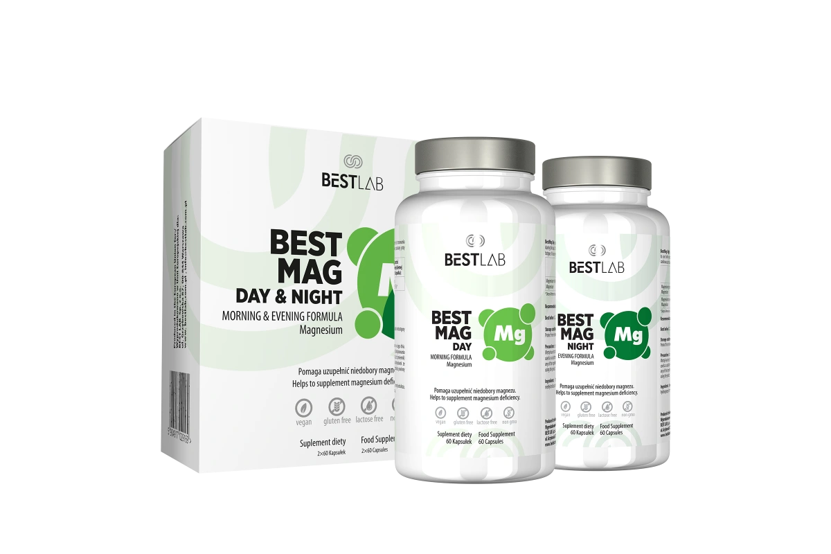 An adequate supply of magnesium is important for everyday functioning and well-being. BestMag Day & Night is a supplement that boosts energy during the day and helps you relax and sleep better at night.