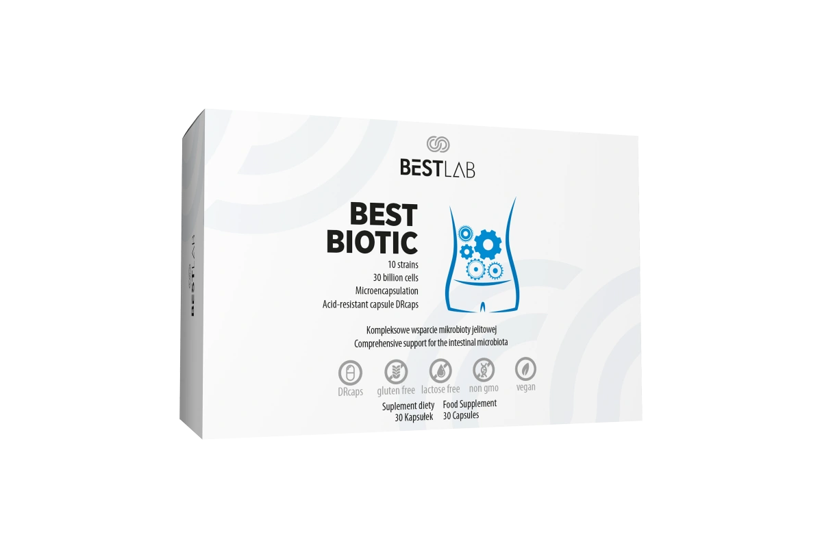 BestBiotic to zaawansowana formuła wspierająca mikrobiotę jelitową. Większość probiotyków dostępnych na rynku nie może równać się pod względem ilości jednostek tworzących kolonię. Obecność 30 mld bakterii w jednej kapsułce spotyka się z wymaganiami organizmu i przewodu pokarmowego, pod kątem regulacji pracy jelit i żołądka, wspiera utrzymanie fizjologicznej równowagi w obrębie przewodu pokarmowego oraz dobre samopoczucie, które pochodzi od jelit.