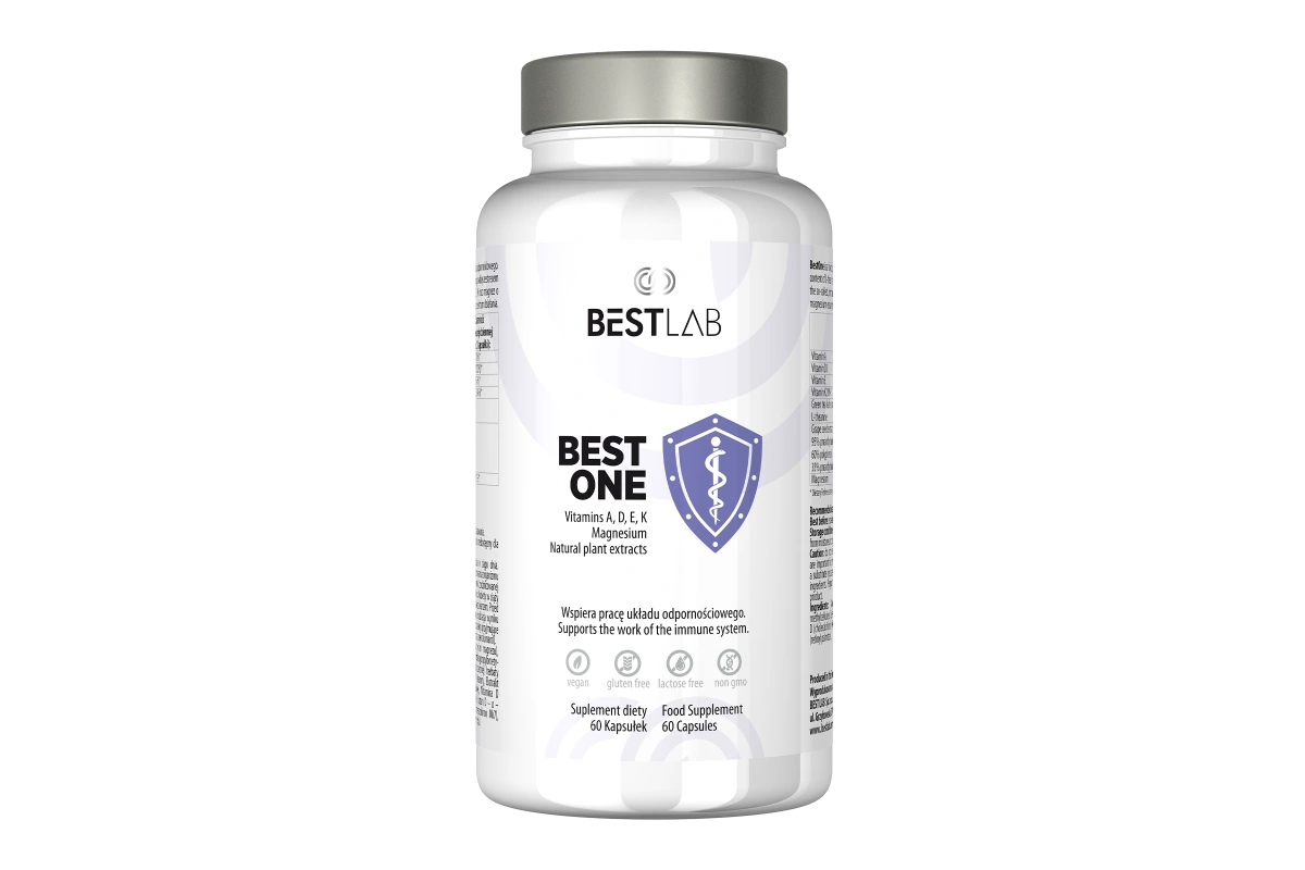 BestOne to zaawansowany suplement diety, którego składniki wspierają Twój układ odpornościowy na co dzień. Zawiera kluczowe witaminy, magnez i ekstrakty roślinne.
