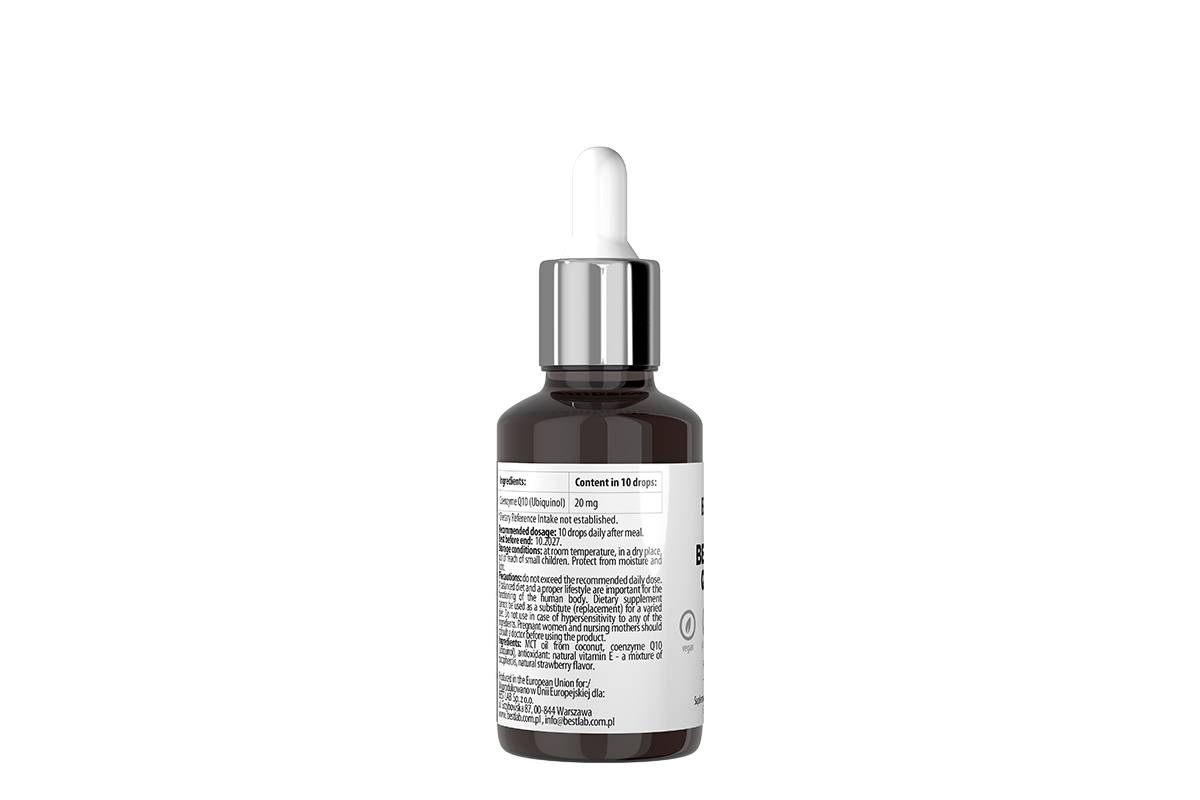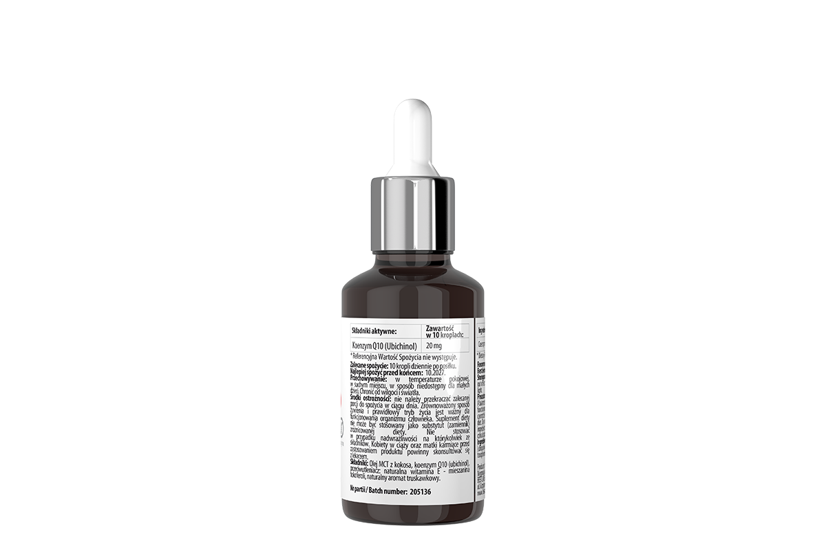 - 10 kropli = 20 mg koenzymu Q10 (ubichinol)